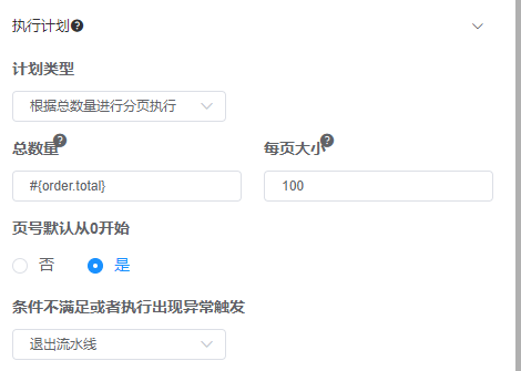 设置执行计划为“根据总数量进行分页执行” ,设置如下图: